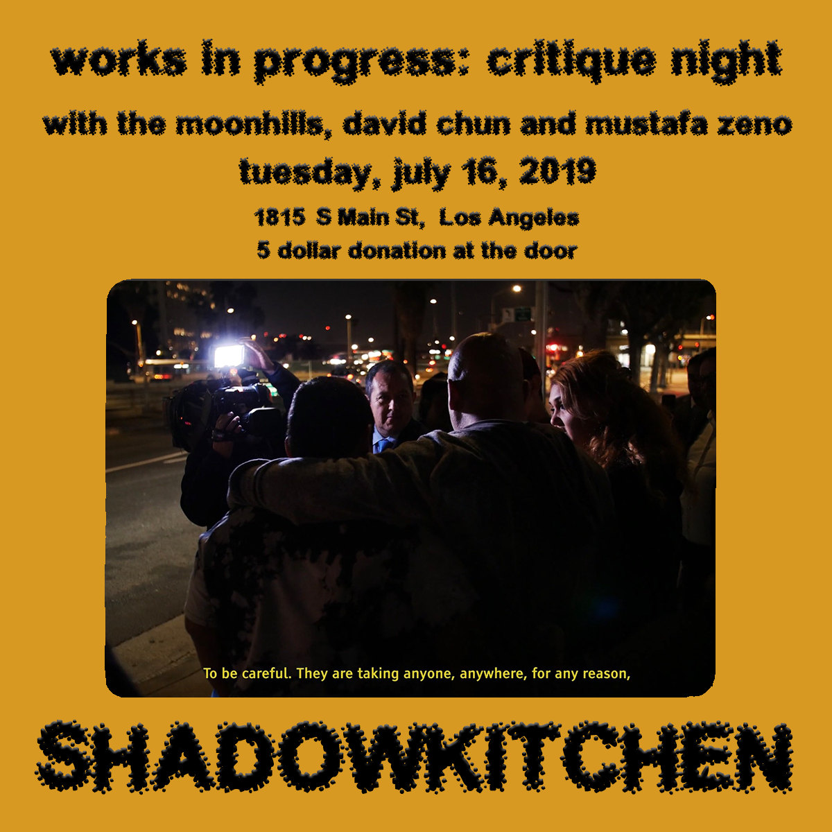 Critique Night of two works in progress – the documentary Solís, Hielo, y Sol by David Chun and Mustafa Zeno, and the music video Parade by Nat & Veronica Moonhill!