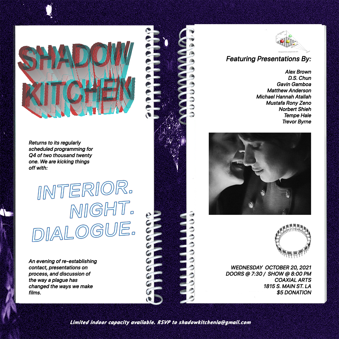 For our re-animating event, we’ve asked a roundtable of filmmakers to discuss how their practice has changed during this period of enormous upheaval. This night of loose presentations and discussion invites us all to return to Coaxial, return to each other, and get back to the work of building a community of independent imagemakers for post-pandemic and beyond.